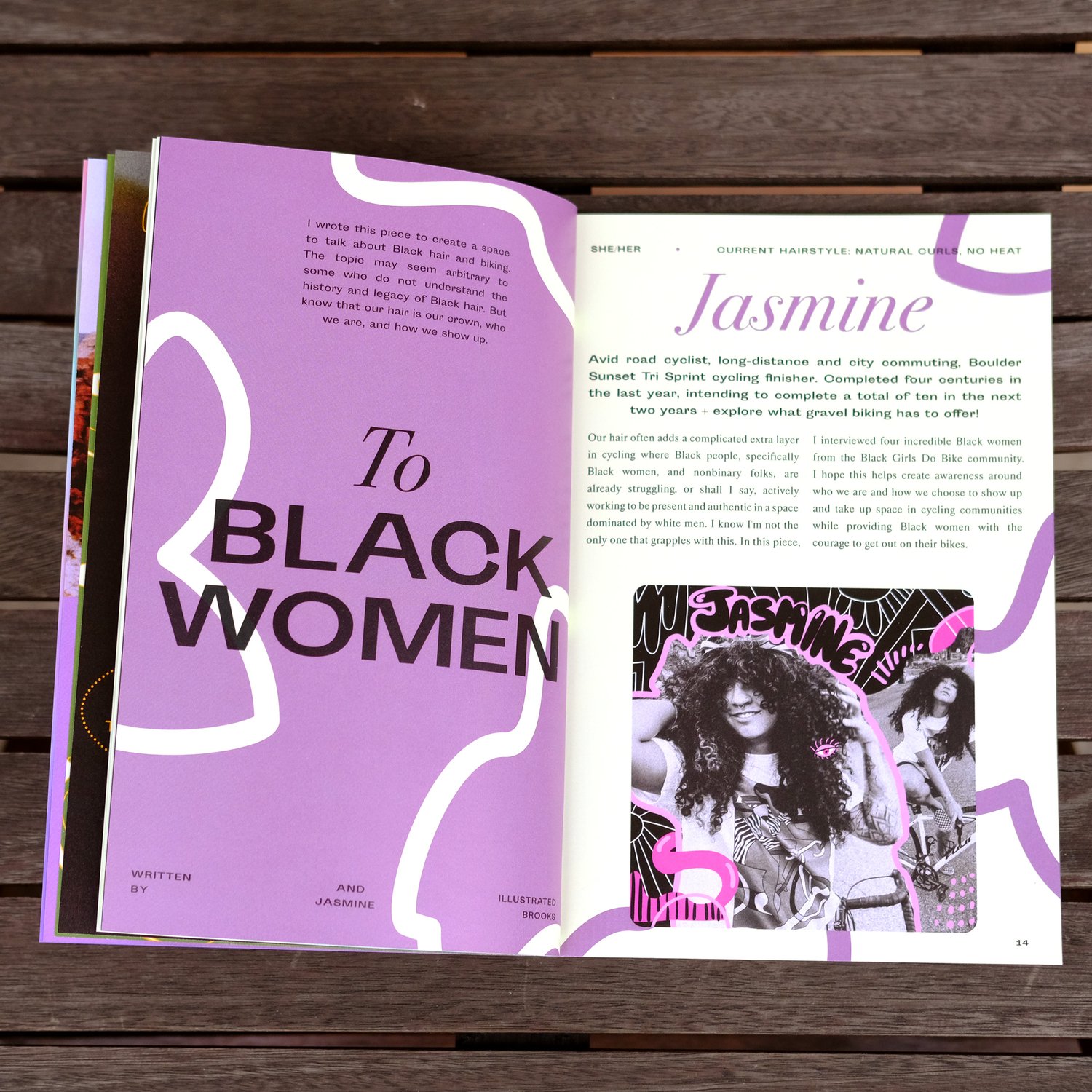 Get Rad’s second issue, Making Space and Stepping Back, features 13 contributors creating space for BIPOC and trans, women, intersex, and gender non-conforming folks in the cycling and outdoors community. Contributors center on community building and organizing, prioritizing self and collective care and cultivating education and knowledge-sharing in the bike adventure community.