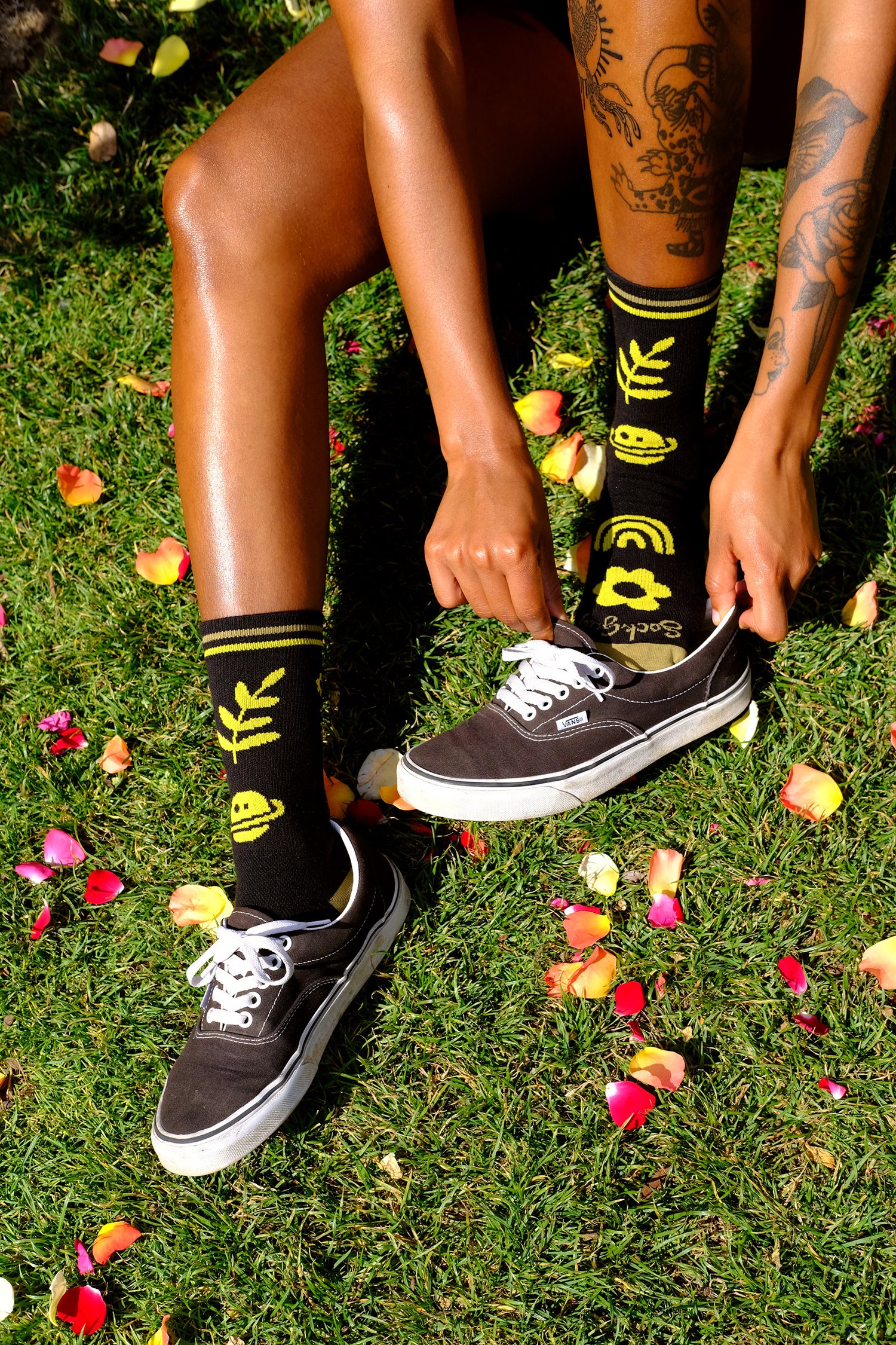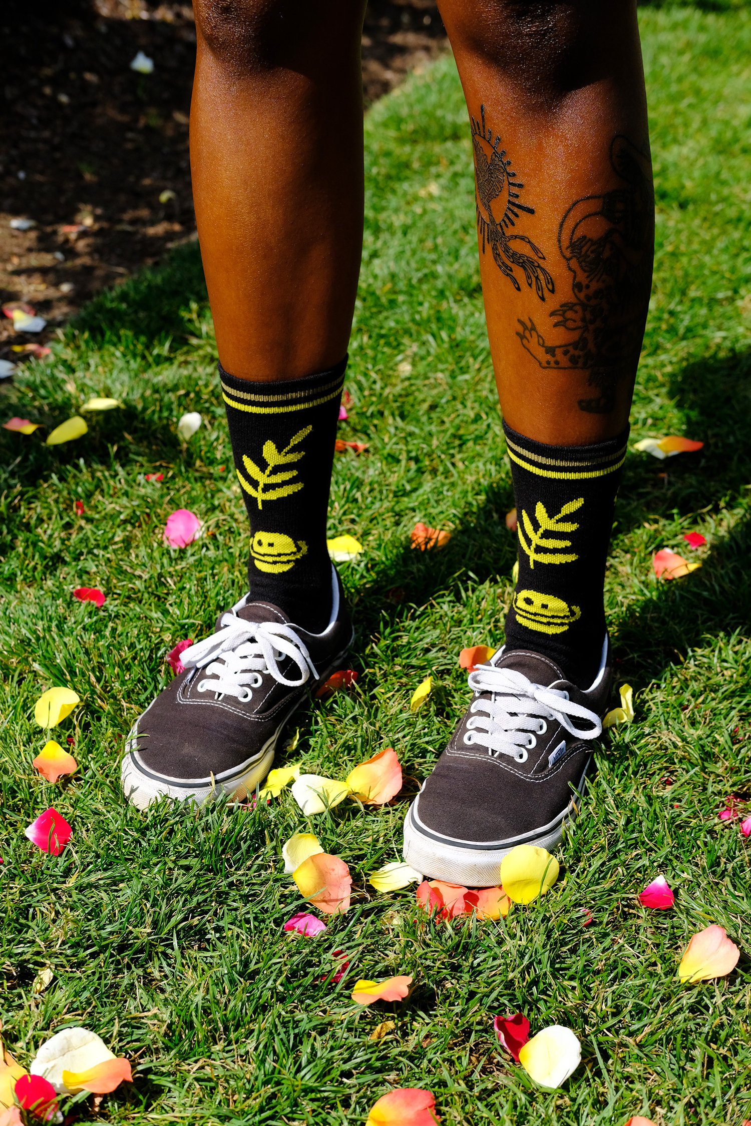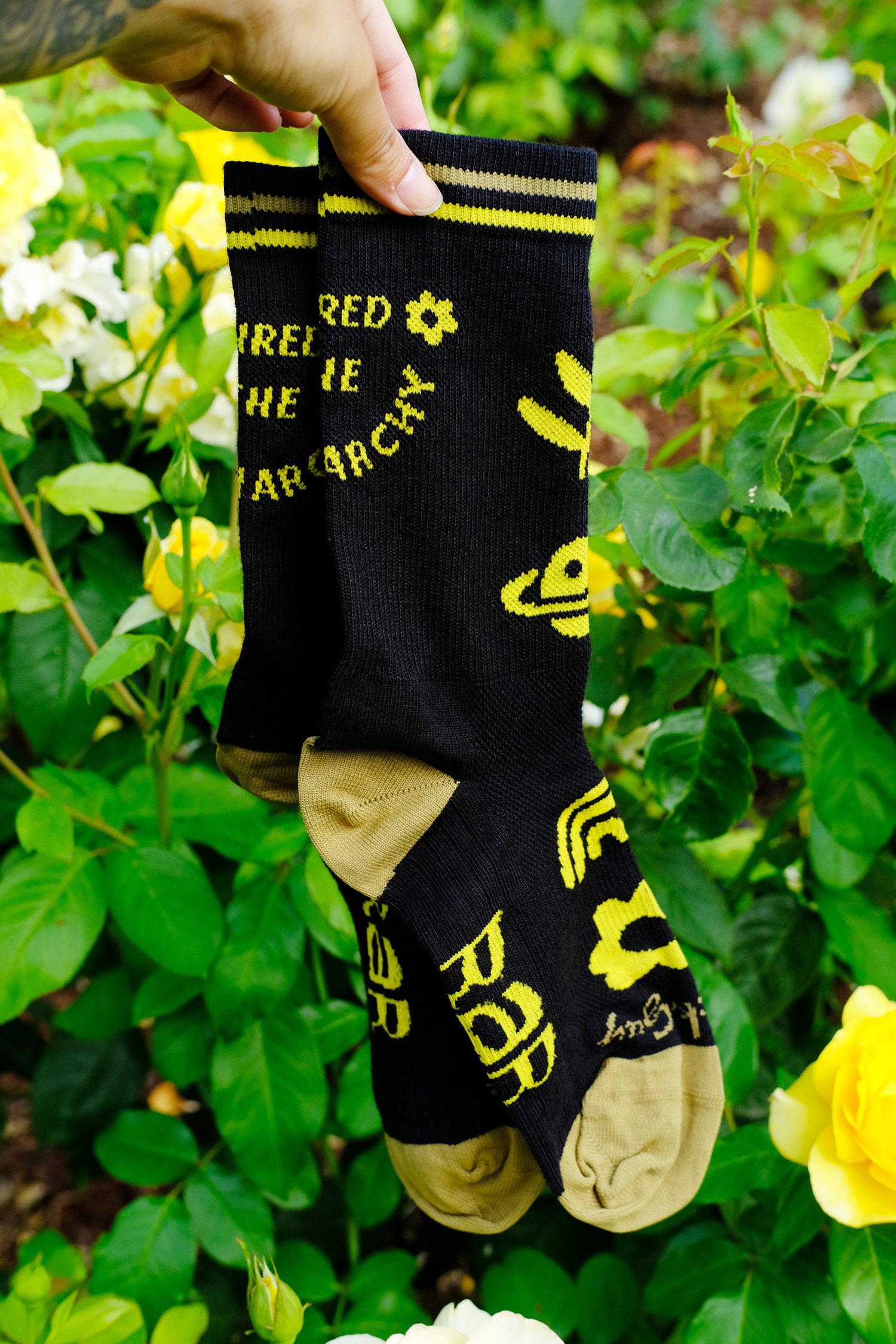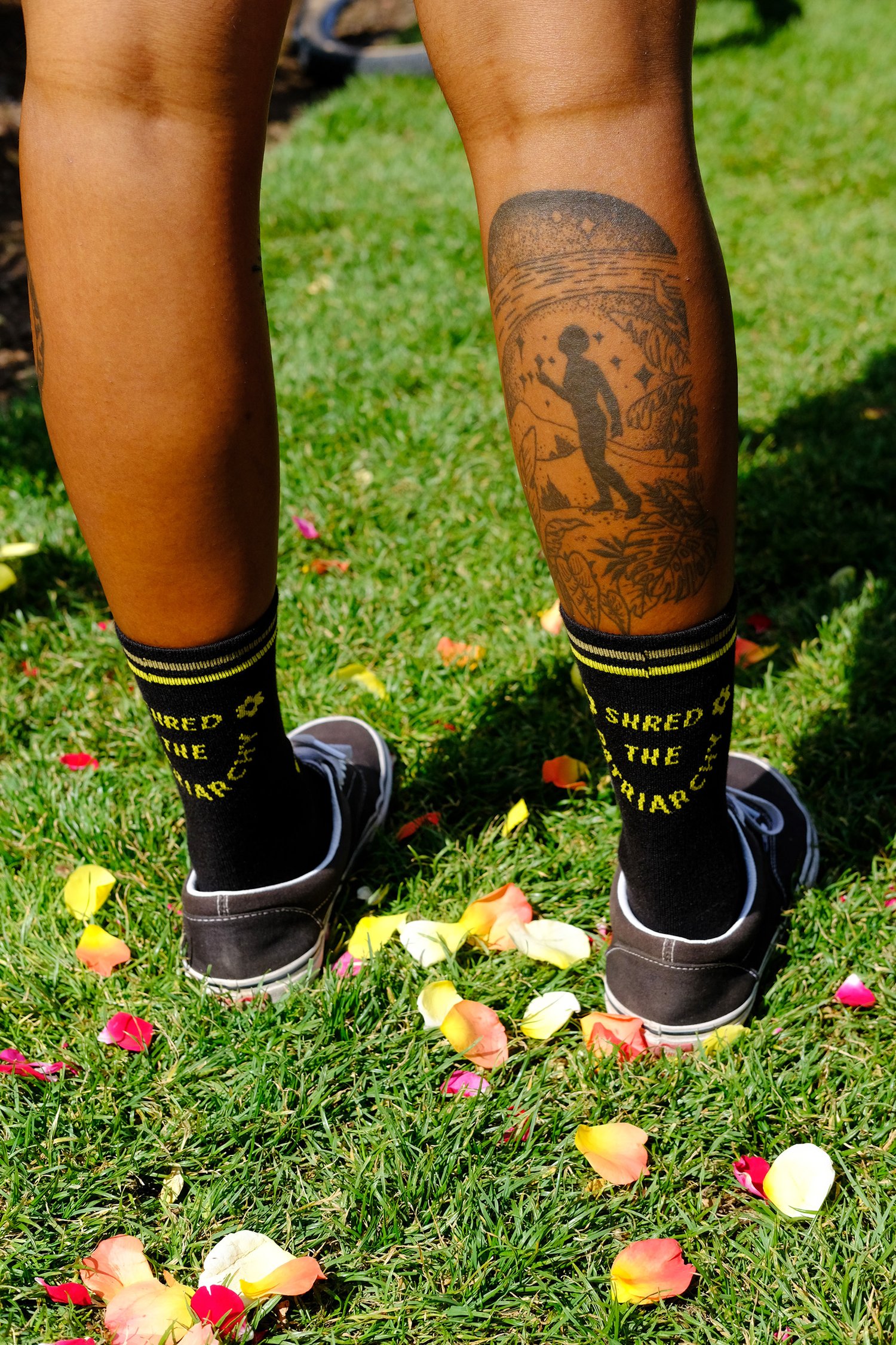 🌻 The RAR Shred Socks highlight five essential universal elements - nature, space, rainbows, flowers, and shredding the patriarchy.